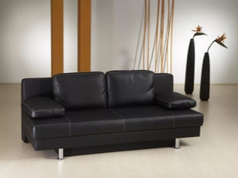 - Черният кожен диван-книга изглежда много луксозно. Този модел е в състояние да каже много за социалния статус на собственика на тази мебел..
