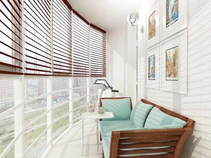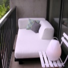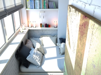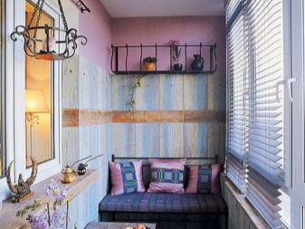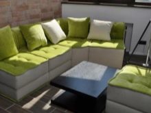 Именно за балкона стилизираният диван е много подходящ. Можете да превърнете балкона си в сладко и уютно място за почивка, като използвате плетени и меки материи и омекотите пространството. До дивана можете да инсталирате библиотека или статив със стол.