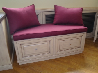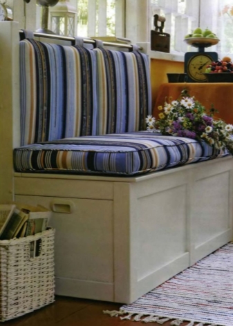 Това е например „Сандък“. Това е диван с достатъчно свободно пространство вътре. Той е скрит под седалката и поради механизма за отваряне наистина прилича на ракла. Може да има една ниша под седалката. Понякога има няколко ниши, разделени с тънка преграда. Тази опция е удобна, ако ще съхранявате бельо, парцали, дрехи на балкона..
