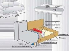 - За да направите разтегателен диван, ще ви е необходима специална сгъваема конструкция. Те се продават във всеки магазин за хардуер. За ваше собствено удобство можете да прикрепите колела към дивана..