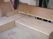 - Изрежете листа до размерите, които сте очертали, и свържете дъските с самонарезни винтове или специални мебелни шипове (с помощта на бормашина). Ще ви трябват и мебелни ъгли за закрепване. Закрепете лист шперплат към рамката по същия начин, на мястото на седалката и облегалката. Те трябва да бъдат покрити с гумена пяна и след това да завършат – украсяват с плат, кожа или добавят друг слой възглавници. Това се прави най -добре с телбод за мебели. Можете просто да подплатите рамката с възглавници, които я правят удобна за сядане. Така че не е нужно да страдате с телбод и е лесно да се пере.