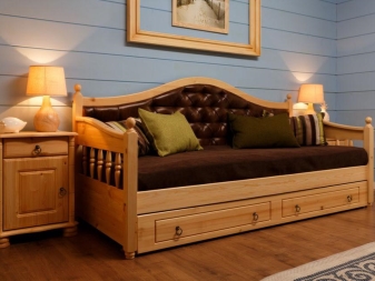 Такова оригинално легло ще се побере не само на дете, но и на възрастен. Облегалките са проектирани да осигурят максимален комфорт. Облегалката осигурява опора. Чекмеджетата за пране са вградени и лесно се плъзгат, тъй като са монтирани на бегачите. Естественият материал на рамката гарантира безопасността и екологичността на мебелите.