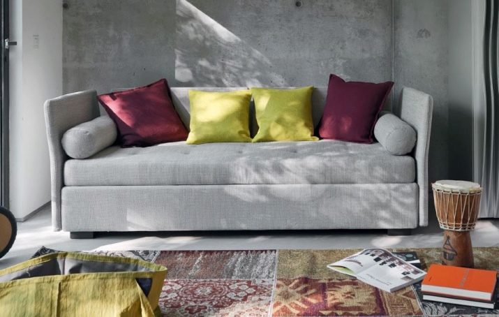 - Сгъване. Използва се за малки стаи, което ви позволява да сгъвате дивана през деня и да оборудвате спалното легло през нощта.