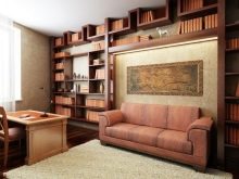- Всяко парче от интериора трябва да бъде функционално: диванът трябва да има система за трансформация. Това ще позволи, ако е необходимо, да се настани за през нощта. Ако кабинетът е и спалня, диван лесно може да замени пълно легло..