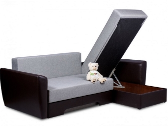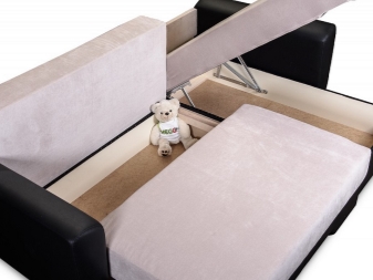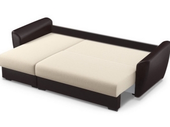 Под седалката има просторни чекмеджета, в които можете постоянно да съхранявате спално бельо или други принадлежности за сън, било то възглавници или одеяла. Достъпът до чекмеджетата е много лесен, просто плъзнете седалката. Дори крехко момиче може да направи това без никакви проблеми. При избора на най -подходящия вариант за потребителите цената не е на последно място. Тя несъмнено ще зарадва всеки купувач. Заслужава да се отбележи, че на уебсайта на фабриката „Много мебели“ промоциите и отстъпките за стоки са постоянно в сила. За съжаление, дори такъв многофункционален диван има своите недостатъци: подложката във възглавниците се деформира, гумата от пяна провисва. Има фабрични недостатъци и недостатъци. В редки случаи, поради недостатъчно качество, недоволните клиенти връщат дивана.