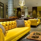 За да придадете на дивана акцент на основния елемент на интериора, трябва да използвате ярки контрастни цветове. Това решение се използва най -добре в помещения като хол, коридор, фоайе на хотел..