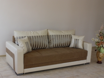 - Следващ диван се отнася до прави дивани. Има модерен дизайн, разработен според европейските стандарти. Тапицерията подчертава стила и строгостта на продукта. Подходящ дори за малки пространства. Диванът лесно се превръща в легло. Сгъваемият механизъм тик-так предпазва пода от надраскване. Наличието на голяма кутия за спално бельо решава проблема със съхранението на спално бельо.