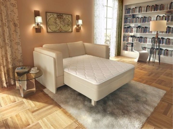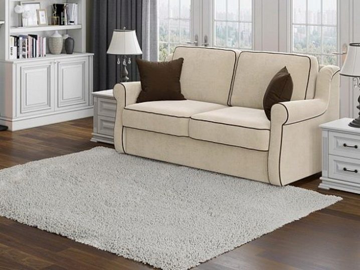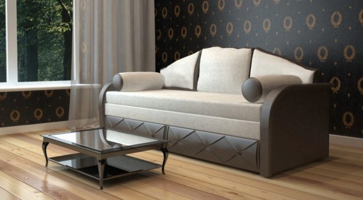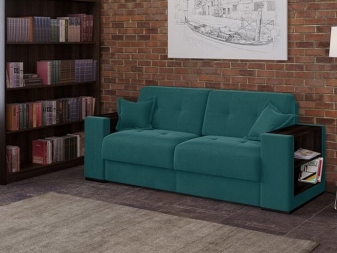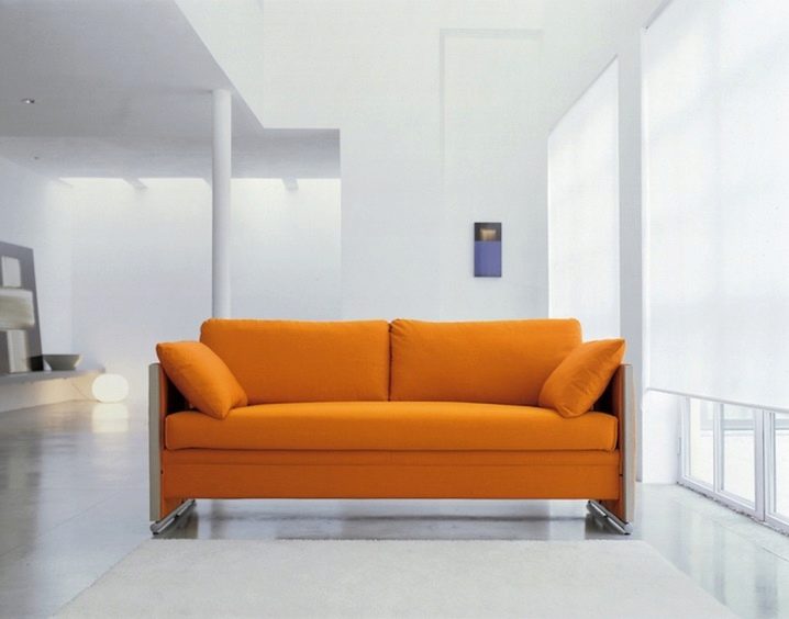 В сгънато състояние дълбочината на дивана е 110 сантиметра, а ширината на подлакътниците е 8 сантиметра.. За хол или спалня в стила на минимализма това ще бъде идеално, тъй като моделът няма излишни детайли.. Всички форми и извивки имат ясна геометрия и гладки линии. Интересно и леко допълнение са лаконичните тръбопроводи на подлакътниците и облегалката.
