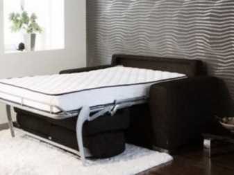 Таблата и две възглавници, включени в комплекта, имат бутони, които съответстват на дивана. Прането може да се съхранява в ниша, която е удобно разположена в областта на задните възглавници. Струва си да се отбележи матрака, включен в комплекта. Той е анатомичен и изработен с помощта на съвременни иновативни технологии. Сънят става възможно най -удобен.