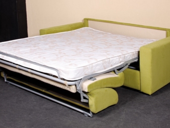 Анатомичният матрак може да се сгъва и разгъва заедно с дивана. Това абсолютно не уврежда неговите свойства. Необходими са минимални усилия и само няколко секунди, за да превърнете този диван в легло. Може да се постави до стена, за да се спести допълнително пространство. По-долу е вградена кутия за спално бельо.