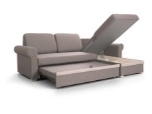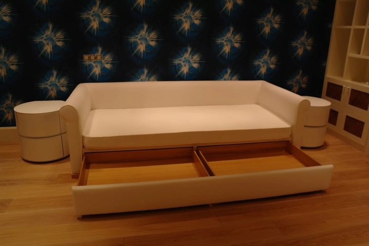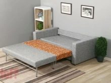 - Прибиращ се. Вероятно най-популярната форма на спален диван е разтегателният разтегателен диван. В Русия такива модели станаха популярни в средата на 90-те години поради техния размер и функционалност. В днешно време този тип често се използва като вариант за гости, тъй като не заема много място и в определено време може да служи като удобно място за спане. Разтегателен разтегателен диван се отличава с факта, че гърбът остава вертикален, докато повърхността за спане е скрита под основата на дивана, откъдето се изважда в точното време. Средната цена за разтегателни дивани в салон „Много мебели“ е 8 тона..