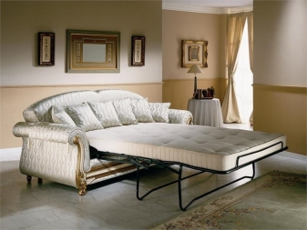 - Дизайнът на дивана предвижда наличието на пружини, следователно, когато позицията на тялото се промени, леглото може да скърца. Също така, някои материали, взети като основа за производството на легло, могат да провиснат с течение на времето под тежестта на тялото..
