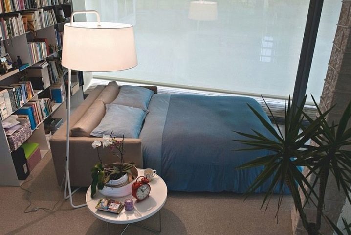- Дълбочината на седалката на тези мебели е достатъчно широка, следователно поне един човек може да спи на него удобно и разглобен.