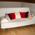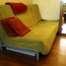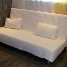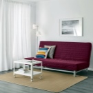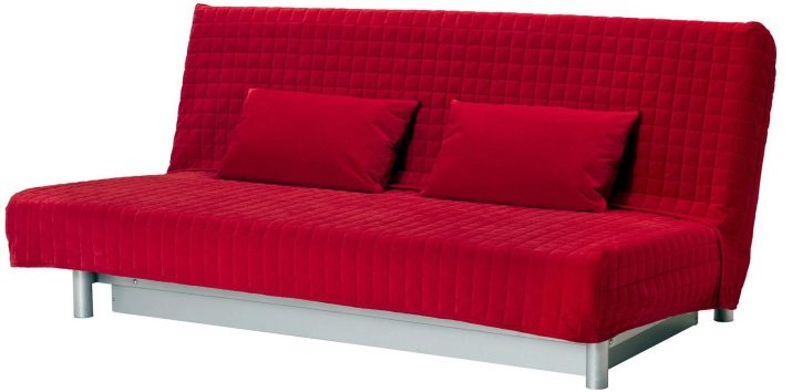 Разтегателен диван от марката Икеа той се отличава със скромния си дизайн и висока практичност. Моделът включва универсална метална рамка с еластични греди от брезов шперплат. Матракът и калъфките се избират индивидуално. Капакът се предлага с 2 възглавници. При поискване могат да бъдат закупени подлакътници и кутия за спално бельо, инсталирани под дивана. Има 6 опции за матрак, от които да избирате. Можете да закупите бюджетна опция от полиуретанова пяна и луксозно легло с ортопедични свойства. Матракът е закрепен към основната част с велкро. Калъфките също се различават по цвят и вид материал. Сгъваем механизъм – “клик -клак” Предимството на този диван е възможността да го транспортирате във всяка кола. Цялата конструкция е разглобена, а компонентите са леки.