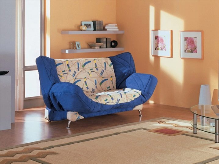 - Компактност. Металната рамка е с компактни размери. Благодарение на това самите мебели могат да бъдат спретнати и малки. Скромните размери позволяват на дивана лесно да се побере в малки помещения. Освен това такива мебели заемат по -малко място и не пречат на свободното движение..