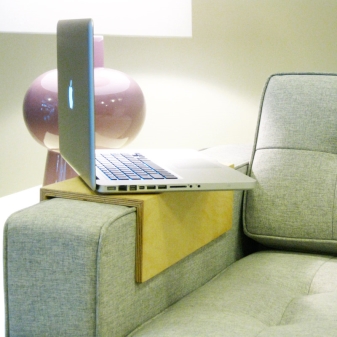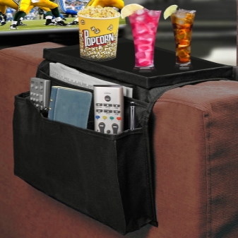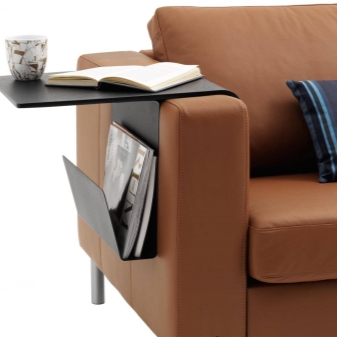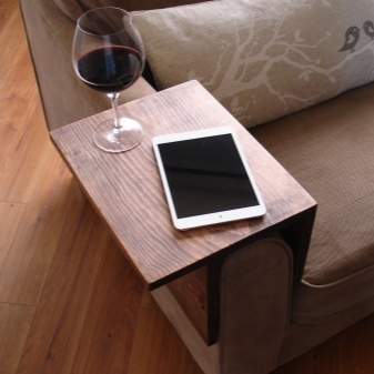 Можете да закупите специална табла за подлакътника, която ще ви позволи удобно да седнете на дивана и да се отпуснете малко след плодотворен ден. Можете също така да поставите чиния със закуски и чаша кафе наблизо. Подпората за подлакътници ще ви позволи да имате лесен достъп не само до храна, но и например до книги, лаптоп, таблет. Можете да поставите телефона си там. Този дизайн може да бъде съставен от различни материали.: