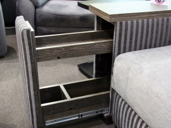 С отварящи се подлакътници. Тази опция е много практична. Могат да бъдат закупени най -креативните модели. В същото време външно продуктът ще изглежда компактен. А вътре в подлакътника можете да държите различни полезни предмети.