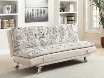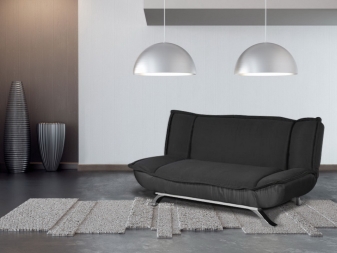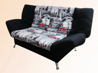 Диван с помощта на системата „Click-gag“ може да бъде много компактен в сгънато състояние. Модел “мини” той удобно ще се побере на лоджия, в малка детска стая, но ако го разширите, полученото място за спане ще остане доста просторно: 200х80 см. Такъв диван има статичен гръб. Тайната му се крие в големите, почти вертикални странични подлакътници, всяка от които може да бъде разгъната в три позиции. Можете да фиксирате и двете или едната в полуразгъната форма и да получите удобна облегалка за глава.