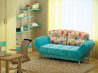 Младежките сгъваеми модели се отличават със своите компактни сгънати размери, интересни цветове и непретенциозна дамаска. Такъв диван ще украси и съживи дори апартамент под наем, а достъпната цена няма да подкопае бюджета на младо семейство..