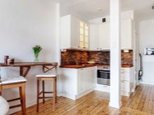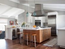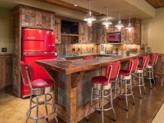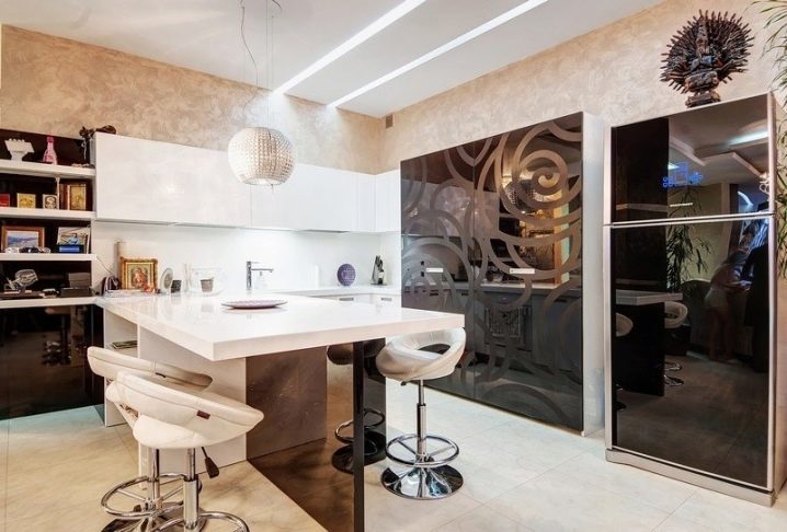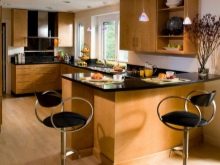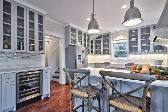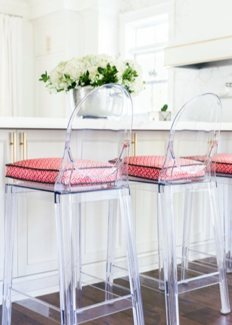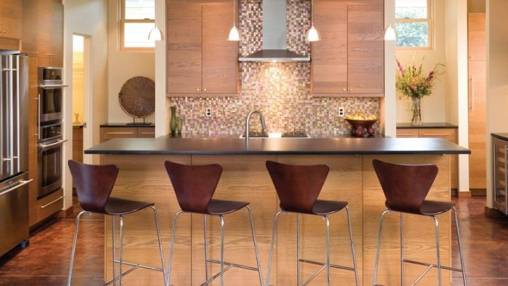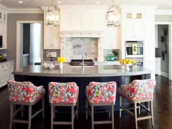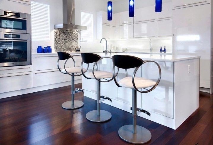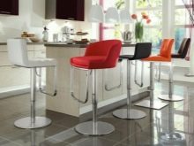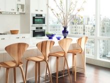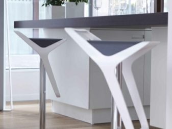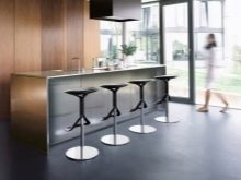 Дизайнерите отбелязват, че бар столовете сега се използват активно при декориране на кухненски стаи. Тези практични мебели са поставени близо до висок плот или кухненски остров..