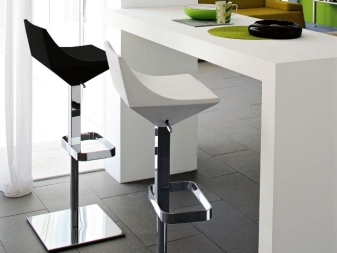 За удобство някои модели са оборудвани с регулатори на височината. Тази функция е налична за версиите с един крак. Ако този параметър не е предоставен, е необходимо да изберете правилната височина на стола. Когато избирате, трябва да се съсредоточите върху средната височина на обитателите на къщата, както и височината на плота или кухненския остров.