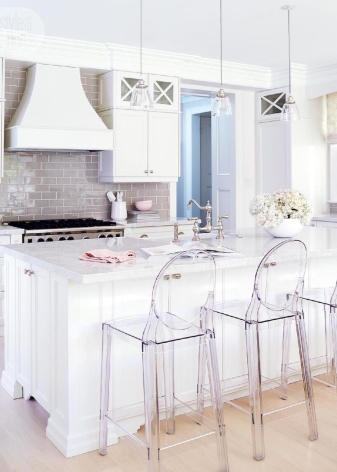Високите бар столове често се използват за оборудване на малък кухненски остров. Резултатът е удобно място за кратко хранене и приятно прекарване с чаша кафе или чай..