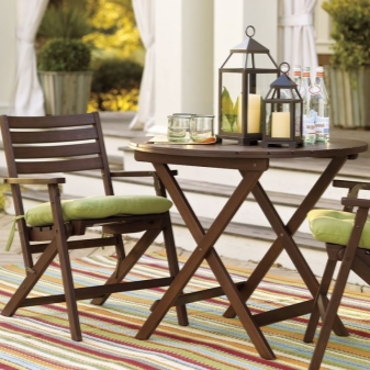 За производството на дървени сгъваеми столове се използват масивно дърво, ПДЧ и шперплат. Мебелите от масивно дърво се считат за най -красивите поради факта, че запазват естествената структура на дървото. Той се вписва идеално в интериори с античен стил. В допълнение, такива мебели изглеждат оригинални на пикници или в градината на вилата..
