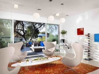 - Ако по -горе горният възглед се възприемаше като нещо необичайно и футуристично, но сега такъв стол се използва в различни стилове. Плетената версия със зелени възглавници хармонично ще се впише в еко-стила. Те също често могат да бъдат намерени в интериора на таванско помещение, минимализъм, хай-тек, скандинавски стил и други. Основното е да изберете правилния цвят, форма, материал и други критерии..