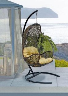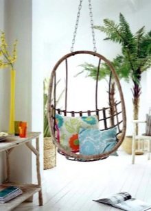 - Можете да поставите висящия стол навсякъде. Ако апартаментът има голям балкон или лоджия, такъв модел ще се превърне в стилна декорация и мощен инструмент за създаване на комфорт..