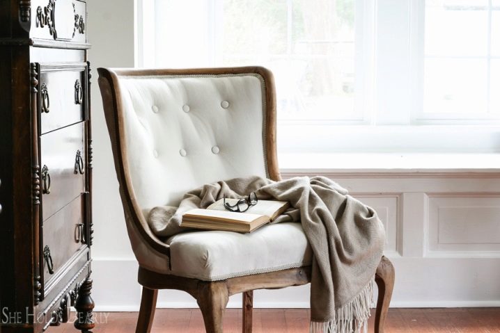 За съблекалня или спалня за момиче е необходим поне един стол – за тоалетката. Женските цветове на тапицерията ще ви бъдат полезни.