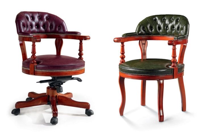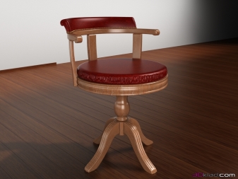 В офиса или офиса дървен стол ще подчертае позицията на човек, а въртящият се механизъм ще помогне за по -ефективна работа.