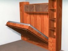 Този вид многофункционални мебели е един от най -интересните. В сгънато състояние такъв продукт освобождава цялото пространство, което заема през деня.. Когато създавате такъв продукт, трябва да използвате доста сложен механизъм, поради което такова легло е една от най -скъпите опции за мебели от целия списък..