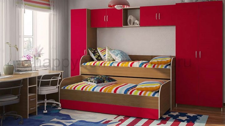 - При избора на цветова схема трябва да разчитате и на възрастта на детето – за учениците можете да изберете ярки, цветни модели, проектирани под формата на пожарна кола или автобус, за по -големи деца – неутрални, спокойни тонове. Ако трябва да изберете мебели за две деца от различен пол, по -добре е да изберете класическия дизайн на самото легло и да изберете спално бельо и декоративен текстил, който да подхожда на всяко от децата.