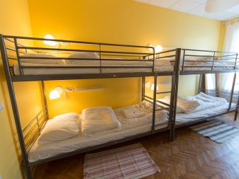 - Двуетажни модели също така изберете студентски резиденции или общежития. Тогава основният фактор е трайността на конструкцията, нейната цена и устойчивост на повреди. Такива модели са украсени със скромни, но стилни.