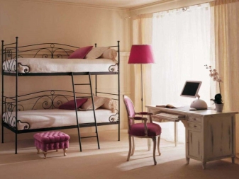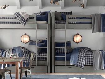 - При избора на цветова схема трябва да разчитате и на възрастта на детето – за учениците можете да изберете ярки, цветни модели, проектирани под формата на пожарна кола или автобус, за по -големи деца – неутрални, спокойни тонове. Ако трябва да изберете мебели за две деца от различен пол, по -добре е да изберете класическия дизайн на самото легло и да изберете спално бельо и декоративен текстил, който да подхожда на всяко от децата.