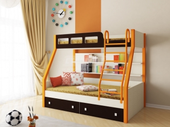 - За децата в училищна възраст е по-добре да изберете модели, оборудвани със спортен комплекс, рафтове за книги и играчки..