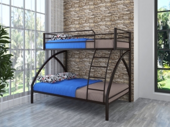- Легла със сложни конфигурации, в които един от етажите заема едно и половина или двойно място – ширината е от 1,4 до 1,6 м, височината е от 1,6 до 1,8 м.