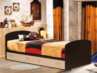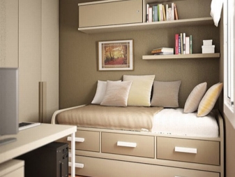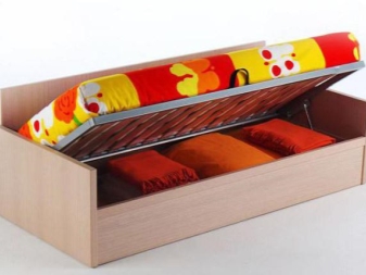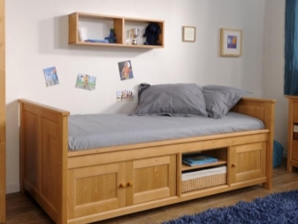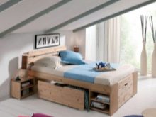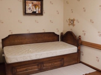 Единственият нюанс, който трябва да се има предвид преди закупуването на такъв модел, е наличието на свободно пространство до леглото. Като правило, легла с кутии се използват в малки апартаменти, малки спални. Кутиите са разположени в долната част на продукта, като негово продължение и не изискват допълнително пространство при затваряне.