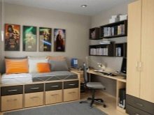 Моделите за спалня за тийнейджъри са по -лаконични. Обикновено те са под формата на диван с гръб, въпреки че има и други възможности..