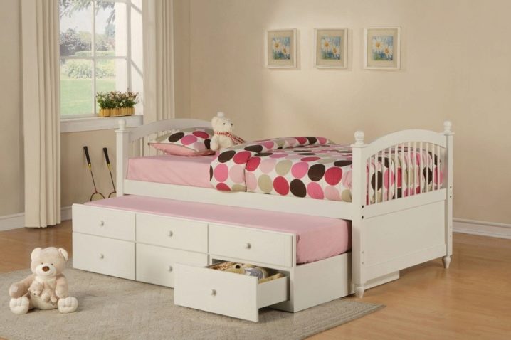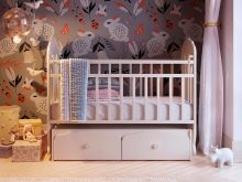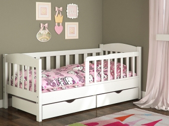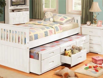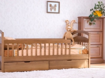 Леглата за най -малките са оборудвани със специални брони, които предпазват бебето от евентуално падане. Чекмеджетата в такива мебели служат като скрин, в който можете да поставите всякакви детски неща..