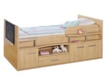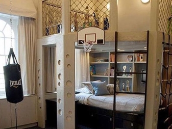 Понякога това са цели комплекси за сън и игра. Те представляват високо легло със стълба, оборудвано отдолу с чекмеджета, рафтове и понякога дори мини шкаф. Такъв комплекс ви позволява да спестите максимално място, без да претрупвате стаята с мебели..