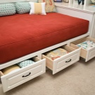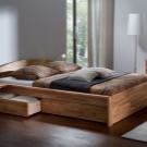 - Най -популярните модели са “Камиони” с чекмеджета за съхранение на бельо. Такова легло ви позволява да използвате площта на стаята много ефективно, тъй като кутията е доста обемна, може да побере много неща. Обикновено в него се съхраняват обувки, кърпи, спално бельо и други необходими вещи. Чекмеджетата обикновено са вградени отстрани на леглото и имат разтегателен дизайн. Обикновено те са много дълбоки и доста широки. Този модел легло е идеален за малка стая..