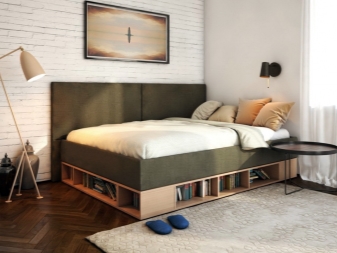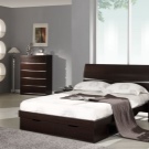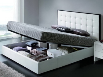 - Има и легла, в които има отделение за съхранение на всякакви вещи., но това не е чекмедже, а ниша, която е вградена в рамката. Но за да стигнете до там, трябва да повдигнете леглото. Тази опция е типична за модели с повдигащ механизъм. Този модел има голям брой предимства, тъй като цялата площ на леглото е площ на ниша за съхранение на неща, така че ви позволява да спестите колкото е възможно повече всеки квадратен сантиметър от спалнята. Единственият недостатък на този дизайн е, че достъпът до нещата под леглото е труден, защото трябва да се вдигне.