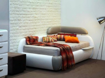 - Също така сега има голям брой модели, които се различават по външния си вид. И така, има легла със здрава основа на таблата, е там с подплатени гърбове. Такова меко легло ви позволява удобно да седнете на него вечер и да четете книга или да гледате телевизия; удобно е не само да спите на него, но и да седнете на него. Леглото със страничен гръб е идеално за тези, които прекарват много време в леглото..