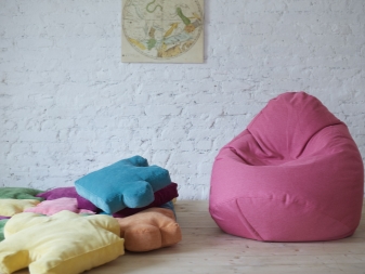- Стол с чанта. Продуктът е мебели без рамки. Столовете са изработени от различни видове тъкани, с помощта на които придават форма на готовите изделия. В повечето случаи детските стаи са оборудвани с такива столове..