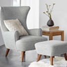 - Пожарна. Дизайните от този тип се отличават с наличието на висок гръб и специални издатини отстрани в областта на главата. Много често те се наричат „уши“, тъй като са предназначени да предпазват от течения. Класическите модели бяха допълнени от издълбани крака и извити подлакътници. Като тапицерия се използваше кариран вълнен плат. Днес такива продукти се подрязват с помощта на различни видове кожа..