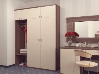 Някои хора избират цял гардероб като гардероб. Тя може да има четири- или шестоъгълна форма, в зависимост от площта на помещението. Вътрешното пространство на гардероба често е проектирано за място за чекмеджета в разгънато положение; продуктът може да бъде снабден с огледало както отвън, така и отвътре. Размерът на гардероба зависи от неговия състав, броя на отделенията и чекмеджетата..