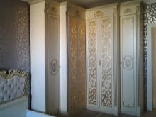 За да може класическият гардероб да стане лек и ефирен, въпреки впечатляващите параметри, дизайнерите създават резбовани врати. Продуктите, издълбани или абстрахирани от богато украсени линии и монограми, изглеждат грациозни и нежни, добавяйки нотка романтика към интериора на стаята.