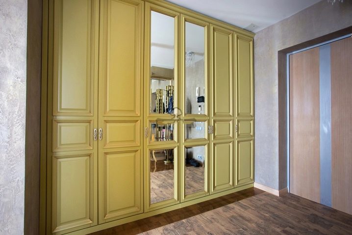 В допълнение към избора на цвят на панелите, важно е да ги проектирате с помощта на декоративни средства. Гардеробите с шарнирни врати обикновено имат затворена предна част, така че има повече място за декориране на продукти..