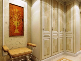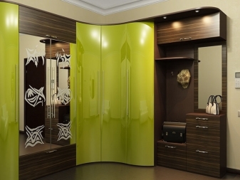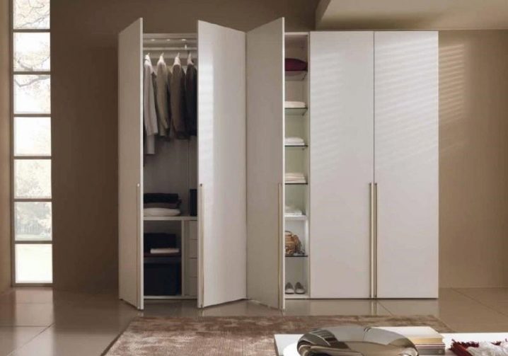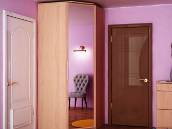 - Гардероб с ъглови врати визуално омекотява ъглите и прави интериора по -загадъчен. Вярно е, че такива продукти визуално намаляват стаята, а полезното вътрешно пространство на самия шкаф също страда..